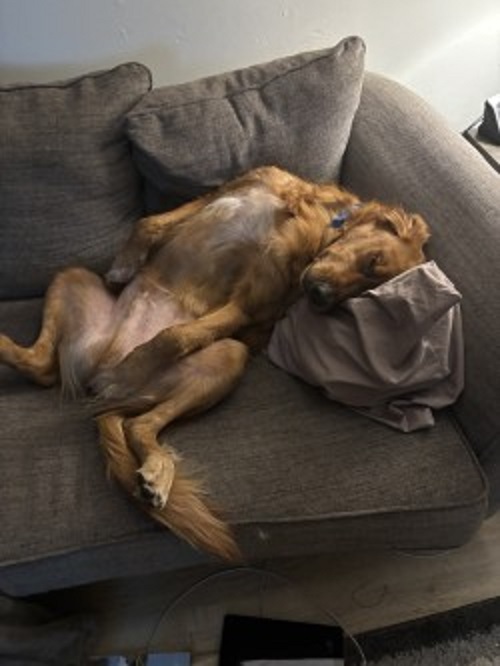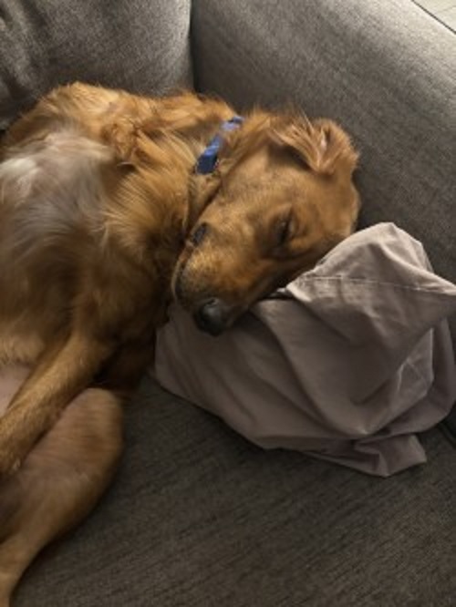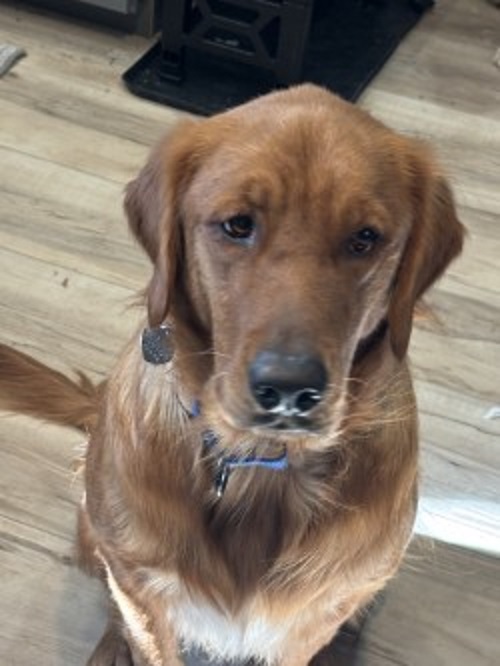 This handsome active boy is a typical young golden retriever. He’s as sweet as they come and loves to snuggle.