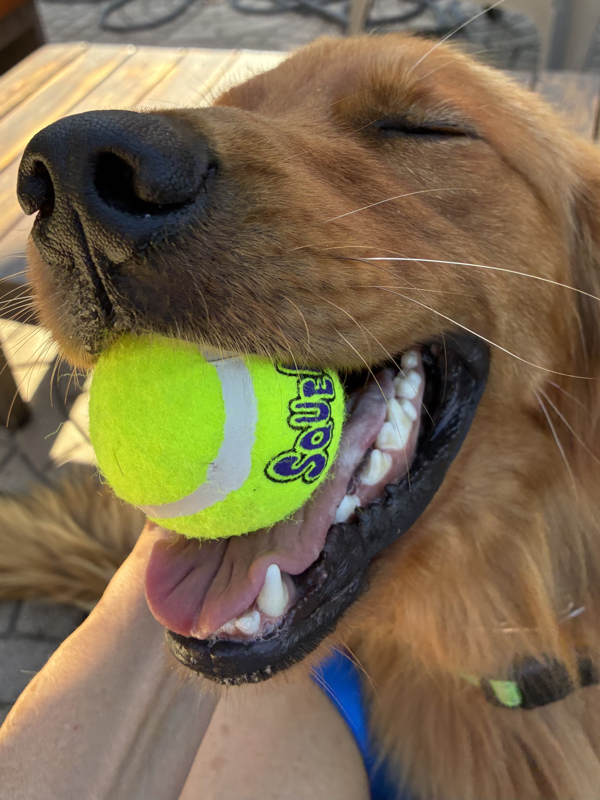 At a year and a half, DOB 01/24/2024, he is still a puppy, but a good walk, game of fetch, or nap in his kennel calm his occasional puppy energy. He loves to play with his foster family, but can also entertain himself. Occasionally he will pick up a paper towel, shoe or sock, but will give it back when told. Giving him a toy as a replacement item solves the problem and he has not chewed anything he shouldn’t. He does well sitting to be petted when meeting new people of all ages and on adventures to Starbucks, Petsmart and parks. He goes into his kennel willingly (especially with a treat) and relaxes easily. He is doing well learning to walk on a leash and enjoys taking walks with neighbor dogs. He likes to sit and observe new sights and sounds especially when outside. He is learning the basic commands and will sit and wait for the “free” command to eat and to enter/exit the house. In the last month he has worked with a trainer and is continuing the work with his foster family. He will benefit from continued training to become proficient with commands.